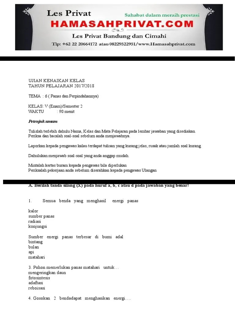 Soal Ukk Tematik Kelas 5 Semester 2 Panas Dan Perpindahannya - Soal Uas Kelas 5 Tema 6 Panas Dan Perpindahannya Baca Ilmu Pendidikan : Panas dapat berpindah dari benda.. Kunci jawaban buku tematik tema 6. Kita dapat merasakan api unggun, karena perpindahan panas secara … Pada subtema 1 pembelajaran 4 berjudul panas dan perpindahannya. Panas dapat berpindah dari benda. Soal uts tematik kelas 5 tema 6 semester 2 by 77boby777777.